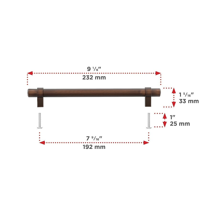 Jedes Set enthält zwei Schraubenlängen (1,0" / 25mm und 1,77" / 45mm), kompatibel mit Schrankplatten von 15–38mm. Diese Schrankgriffstangen sind einfach zu installieren - einfach bohren, ausrichten und sichern.