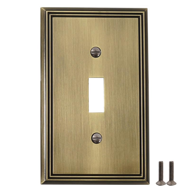 Designed for standard single toggle switches, this switch plate installs in minutes with just a screwdriver. Includes matching antique brass screws for seamless integration. Fits most electrical boxes and switch models.