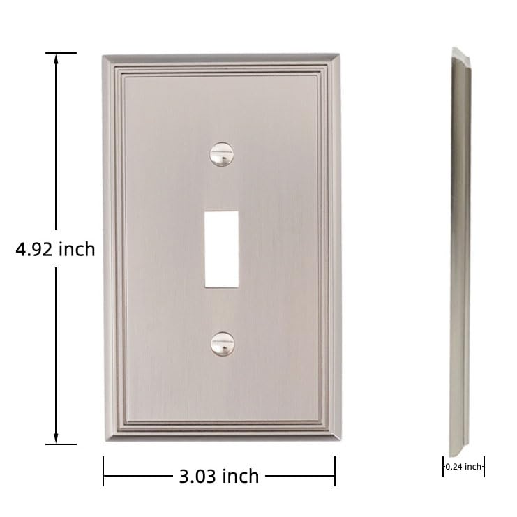 Designed to fit all standard U.S. single toggle switches, this satin nickel toggle switch plate installs quickly with just a screwdriver. Includes matching satin nickel screws for a seamless, coordinated look on your wall.